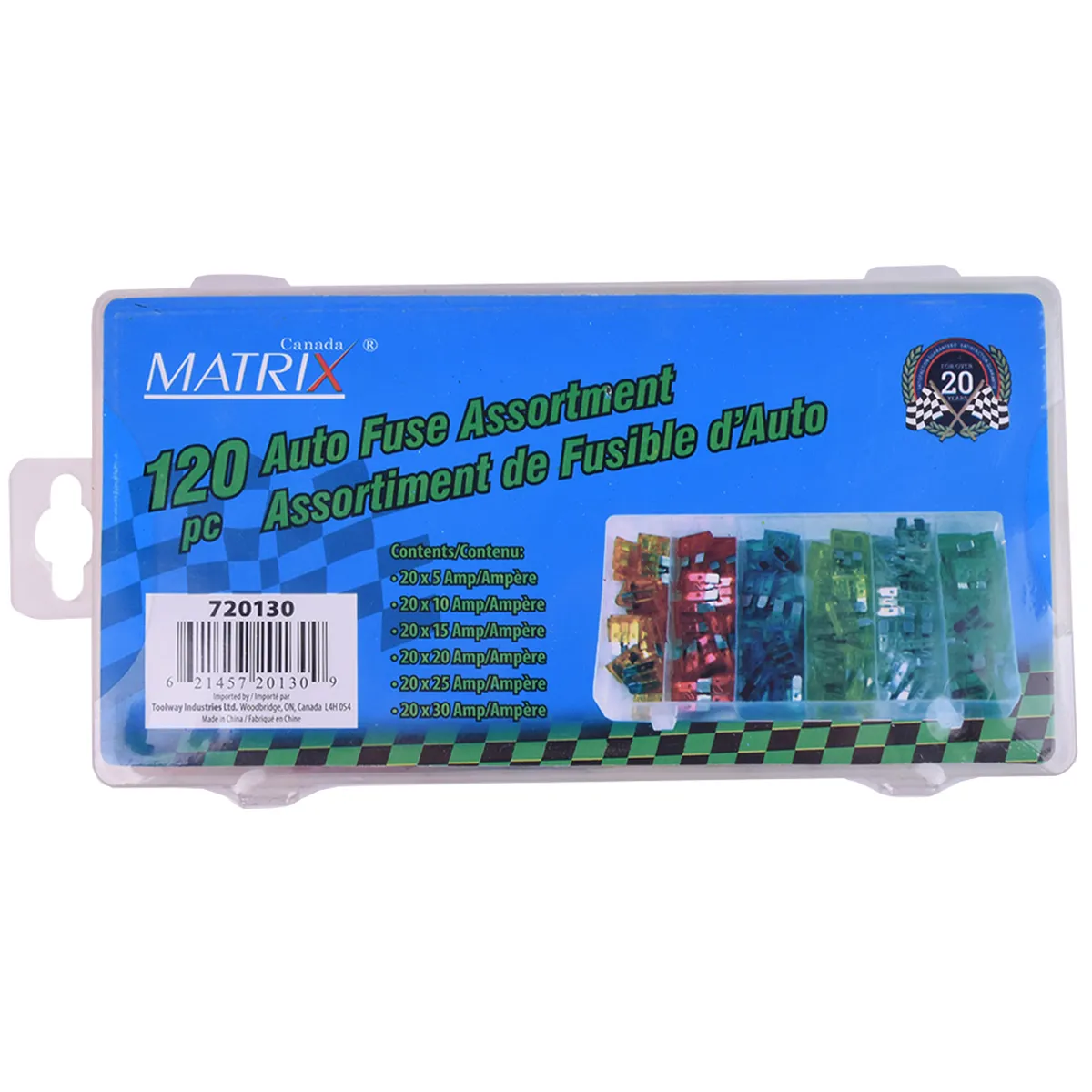 The Matrix Automotive 120 piece auto plug-in fuses.