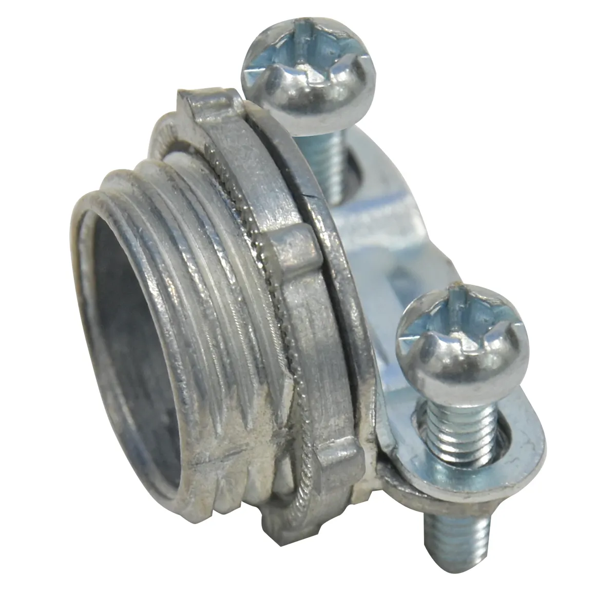 Saddle combination connector are used to terminate armored and metal clad cables to a ½in knock-out in a dry location box or enclosure.