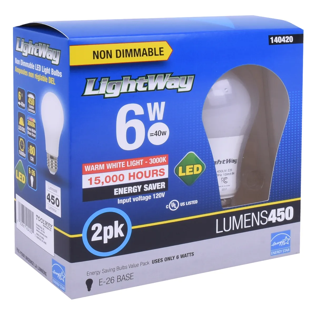 2PK Bulb A19 LED Non-Dimmable E26 Base 6W Warm White
