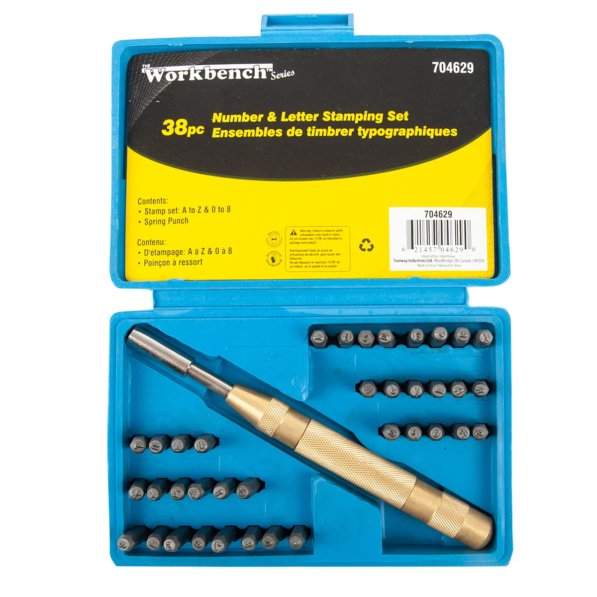 The Tooltech Workbench 38 piece number & letter punch Cr-V set.