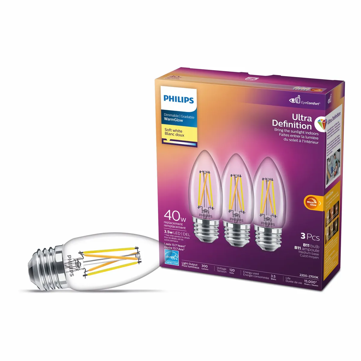 Philips LED clear candles provide a beautiful; sparkling light effect and an exceptionally long life. Beautiful both switched on and off; this light bulb is the perfect match for chandelier fixtures with small (E26) fittings.