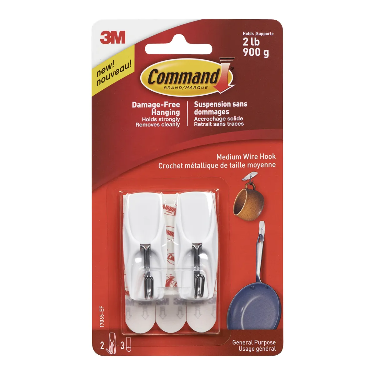 • 2PK Command (TM) Wire Hook Medium White 2lb