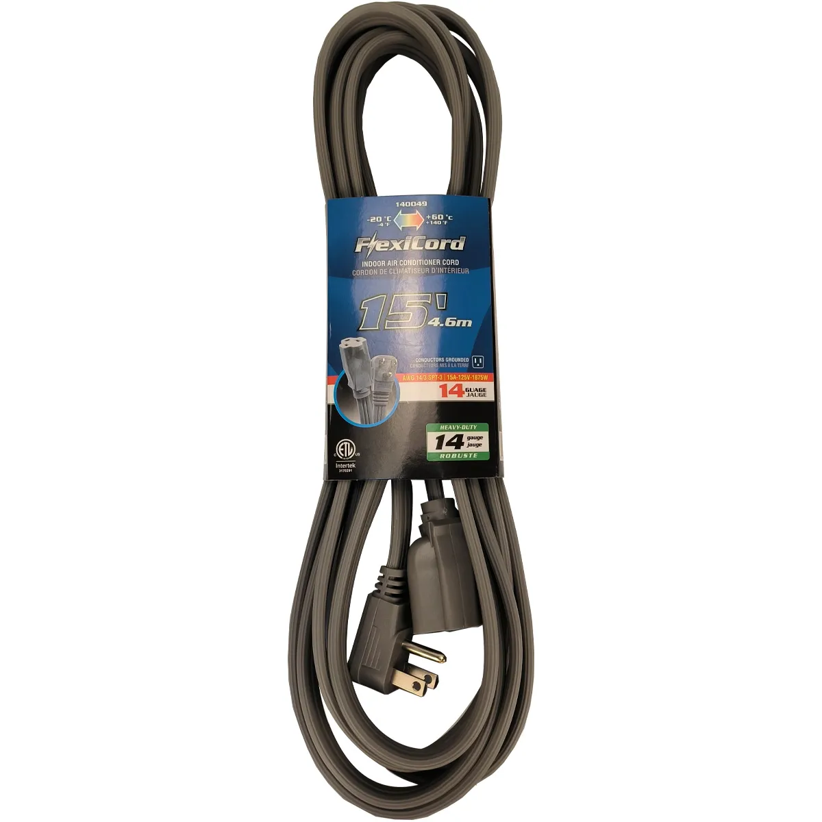 The FlexiCord Medium Duty Indoor Right Angle Extension Cord delivers safe, reliable power for major appliances and high-draw indoor equipment. Built with 3-conductor grounded SPT-3 14 AWG construction and a right-angle male plug, it fits flush against the wall to protect both the cord and outlet. Heavy-duty strain relief extends the cord's working life, and cETLus listing confirms code compliance. Rated 15A/125V/1875W.