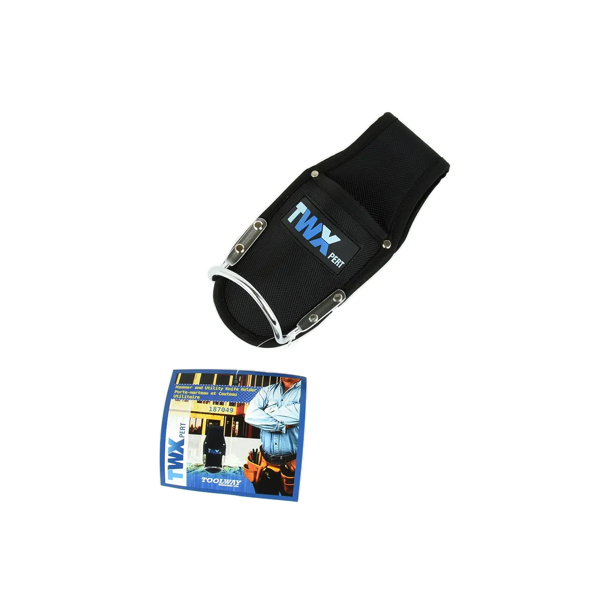 • Heavy duty hammer & utility knife holder.