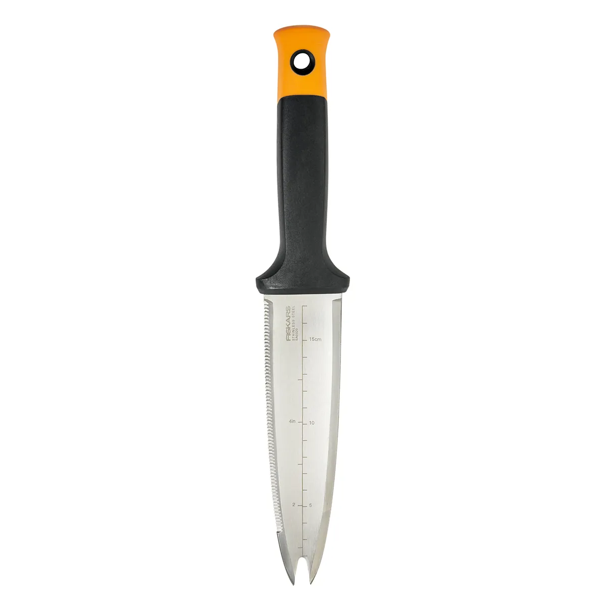 Fiskars® Hori Hori Garden Tool is designed to weed; plant; split; transplant and more; with extended tang for added durability.