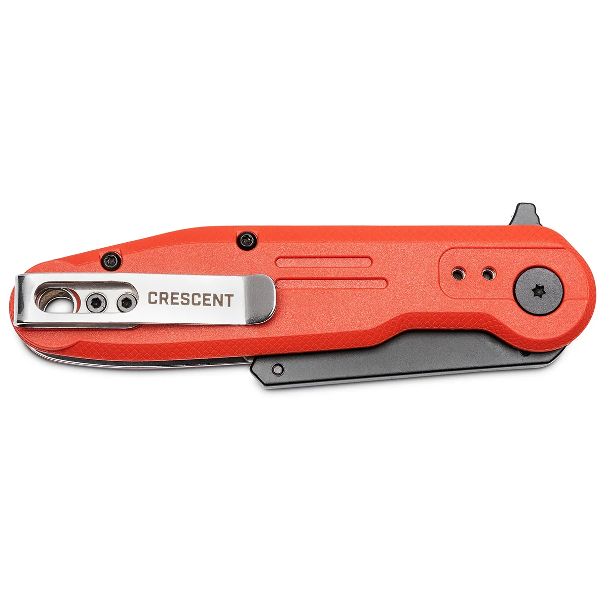 Utility knife with EDC-style handle; deep-pocket design and smooth blade deployment.