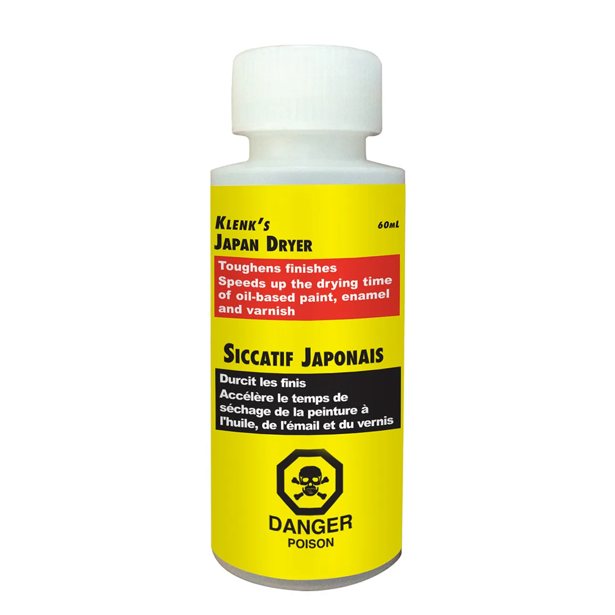 Klenk's Japan Dryer toughens finishes. It speeds up the drying time of oil-based paint; enamel; and varnish. Toughens finishes. It is especially effective when weather is damp or cool.