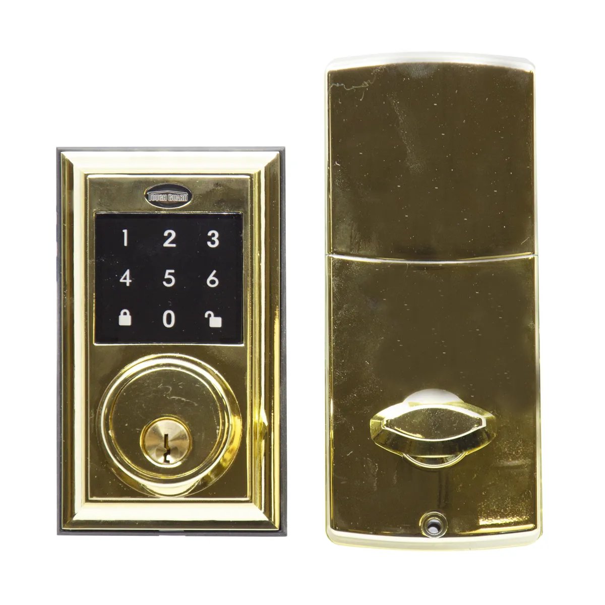 The electronic deadbolt from Tough Guard has been designed with maximum security in mind. Manufactured with the toughest materials for added strength, it is also equipped with "Bump" protection to prevent break-ins from lock bumping and features a failed attempts alarm to discourage tampering. This modern looking lock with its LED backlit touch screen keypad will fit all standard door preparations, comes in three finishes and allows for multiple users with 50 programmable user codes. Requires installation and 4 AA Batteries, (not included). this lock can also be adjusted for right or left hand door applications and comes with 2 keys.