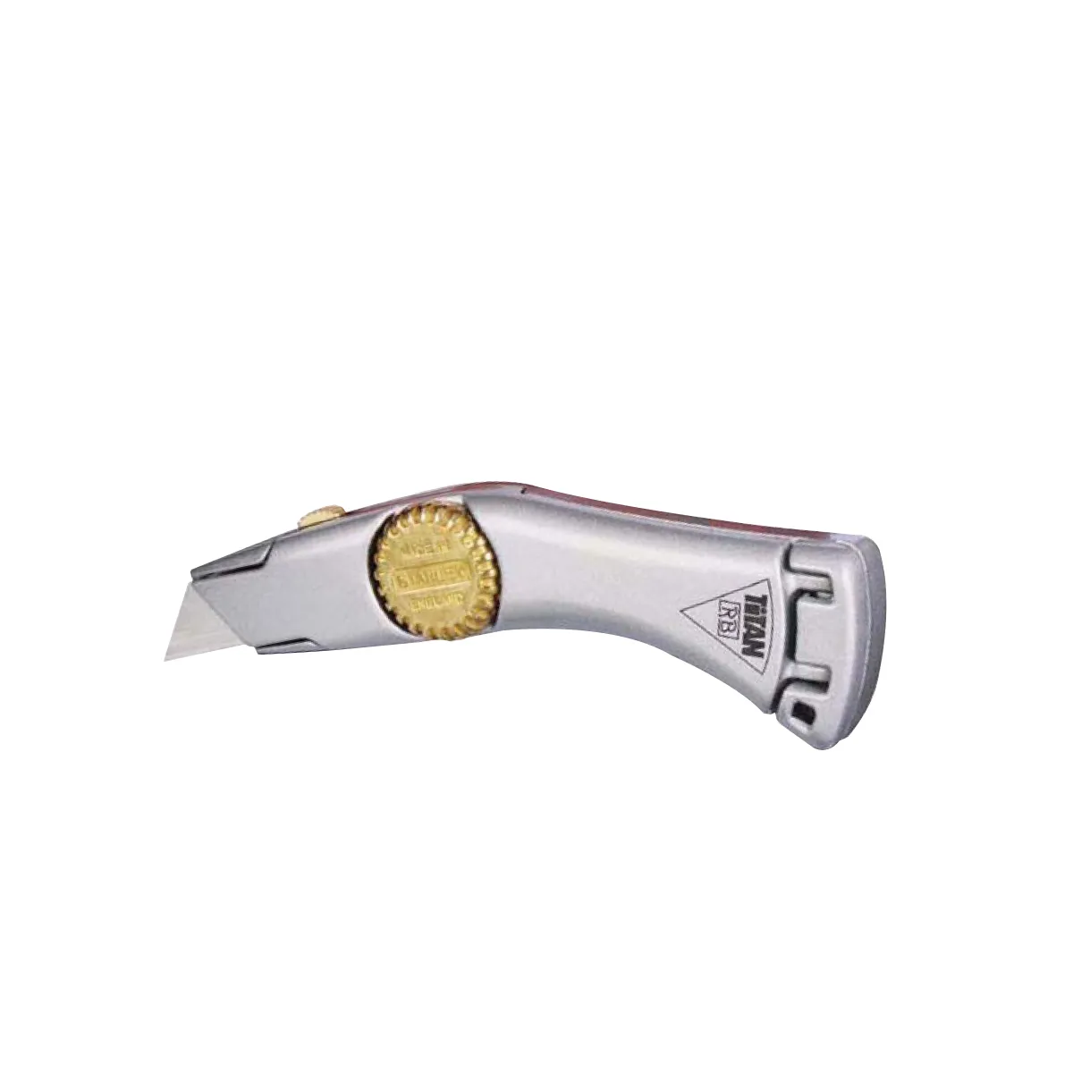 STANLEY 10-550M heavy-duty titan fixed blade trimming knife is a super heavy-duty knife with double notched blade location for added stability. All metal construction for added durability. It comes with sturdy plastic moulded yellow holster.